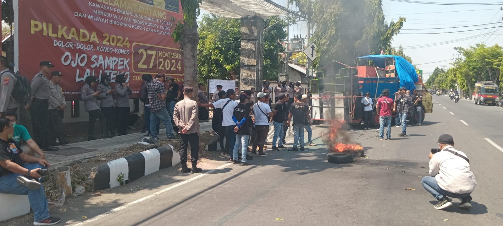 Aksi demo dengan membakar ban bekas sempat membuat macet lalu lintas di sepanjang jalan jaksa Agung Suprapto dipenuhi asap hitam yang sempat mengganggu pengguna jalan.