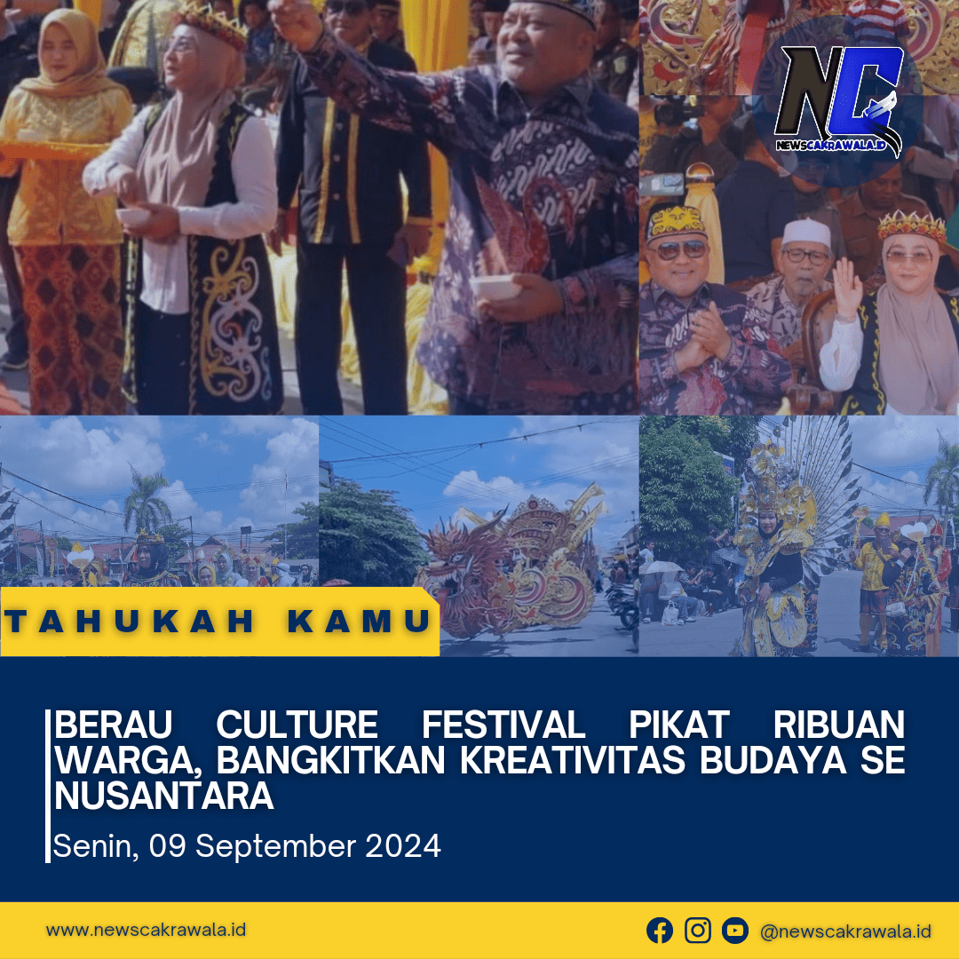 Newscakrawala.id || Tanjung Redeb. Dalam rangkaian memeriahkan Hari Jadi Kabupaten Berau ke 71 dan HUT ke 214 Kota Tanjung Redeb. Pemerintah Kabupaten Berau menggelar pawai budaya bertajuk Berau Culture Festival 2024,(09/09/24).