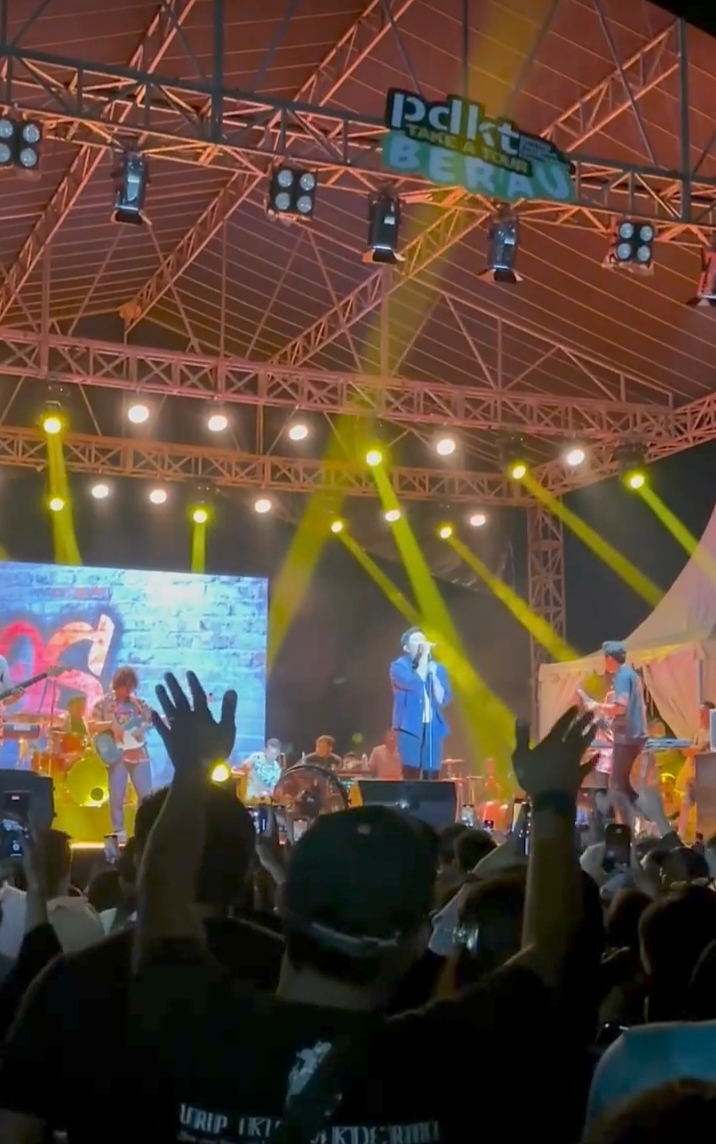 Berbaur dengan penonton, tanpa canggung sesekali ia ikut menyanyikan lagu-lagu yang dibawakan penyanyi.
