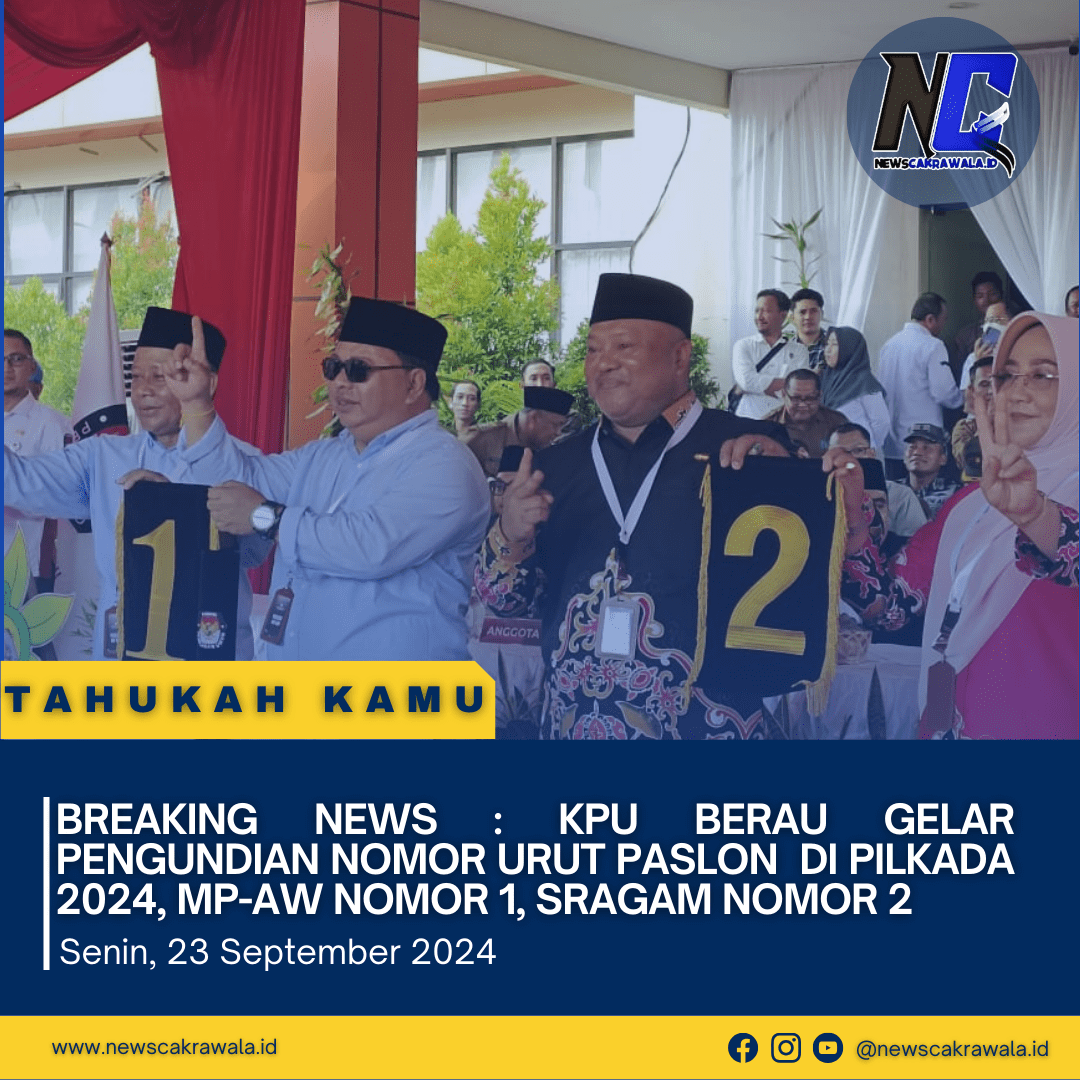 Newscakrawala.id || Tanjung Redeb . Komisi Pemilihan Umum (KPU) Berau menggelar pengundian nomor urut dua pasangan calon (paslon), Senin (23/9).
