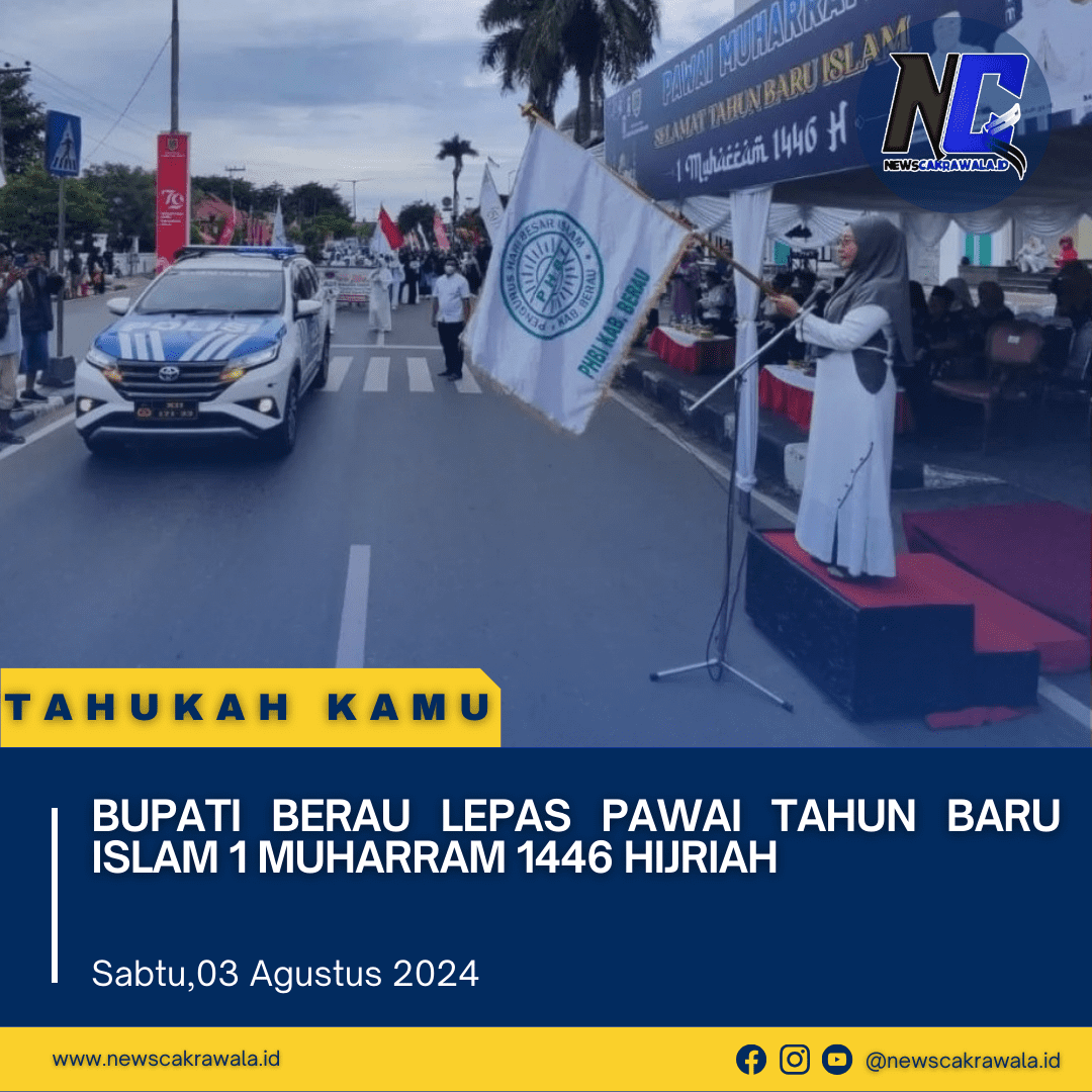 Newscakrawala.id || Tanjung Redeb. Dalam rangka perayaan Tahun baru Islam 1 Muharram 1446 H/2024, Bupati Berau, Sri Juniarsih melepas secara resmi rombongan Pawai akbar yang diselenggarakan Pemkab Berau dan Badan Komunikasi Pemuda Remaja Masjid Indonesia (BKPRMI) ,(03/08/24).