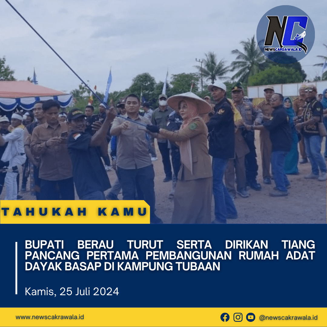 Newscakrawala.id || Tubaan. Bupati Berau turut menarik tali untuk mendirikan tiang pancang pertama pembangunan rumah adat Dayak Basap di Kampung Tubaan Kecamatan Tabalar. Kegiatan ini dilaksanakan pada Selasa (24/07/2024) tepat setelah Bupati Sri Juniarsih Mas membuka secara resmi BBGRM dan meresmikan Kantor Kepala Kampung Tubaan.