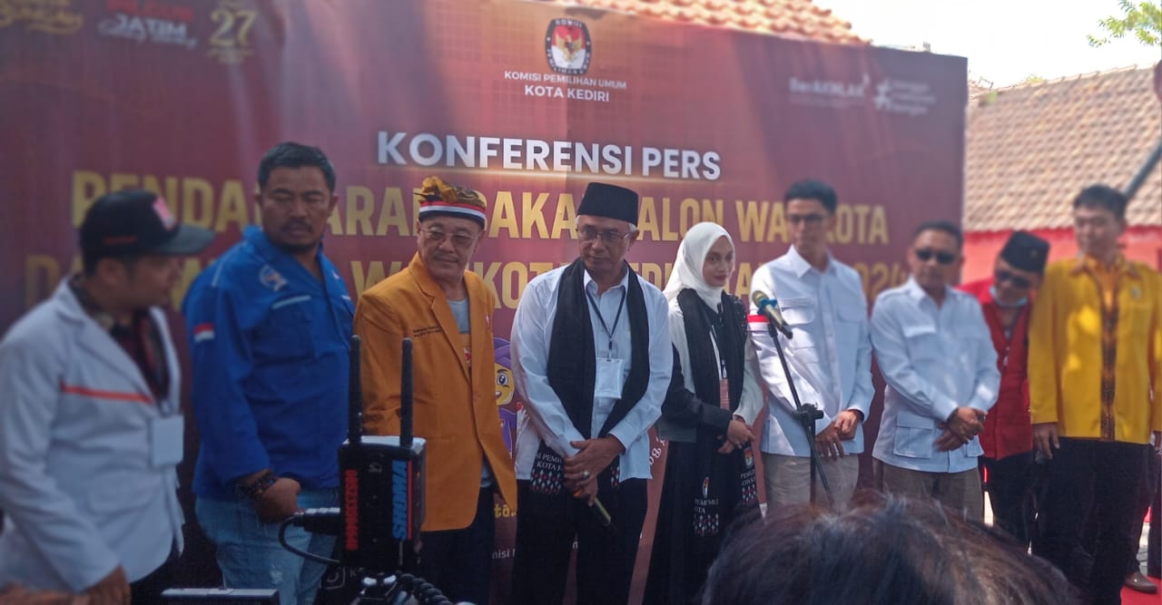 Pasangan calon wali kota dan wakil wali Kota Kediri Vinanda Prameswati, S.H.,M.Kn., – KH Khowimuddin Toha mendeklarasikan diri dengan 9 partai pengusungnya serta dihadapan ribuan masyarakat dari berbagai kelompok dan lintas organisasi yang berlangsung di Alun-alun Kota Kediri, pada Rabu pagi 28 Agustus 2024.