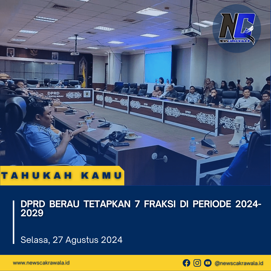 Newscakrawala.id || Tanjung Redeb. DPRD Kabupaten Berau periode 2024-2029 telah mengesahkan 7 fraksi sebagai alat kelengkapan dewan. Pengesahan ini melalui beberapa rangkaian rapat dengan seluruh anggota dewan yang dipimpin ketua dewan sementara Liliansyah yang di Wakili oleh Wakil Ketua Sementara , Elita Herlina, Senin (26/08/2024).