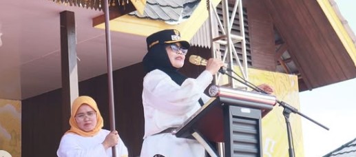 Wali Kota Bontang, Neni Moerniaeni saat Erau Pelas Benua Tahun 2025 di Kampong Rumah Adat Guntung, Minggu (23/11/2025).