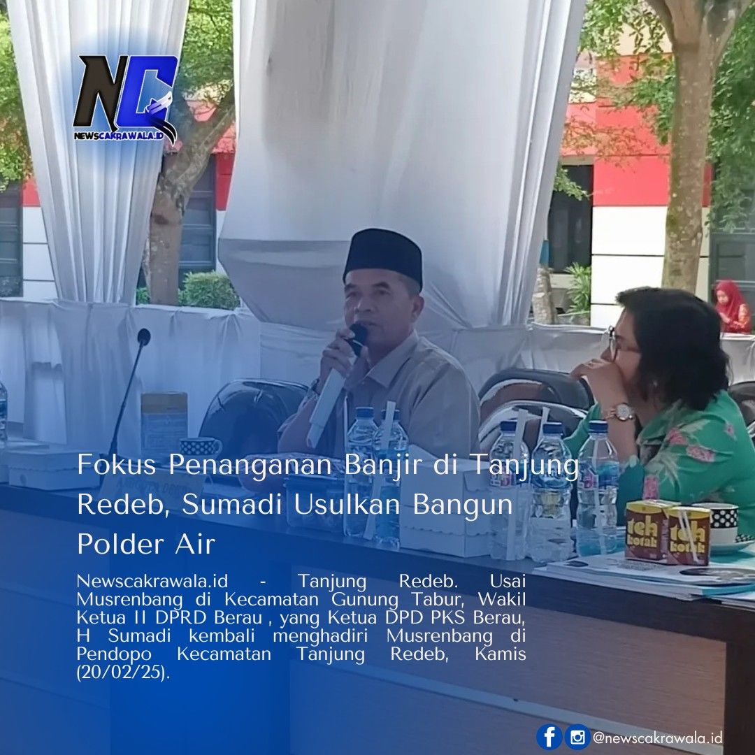 Newscakrawala.id – Tanjung Redeb. Usai Musrenbang di Kecamatan Gunung Tabur, Wakil Ketua II DPRD Berau , yang Ketua DPD PKS Berau, H Sumadi kembali menghadiri Musrenbang di Pendopo Kecamatan Tanjung Redeb, Kamis (20/02/25).