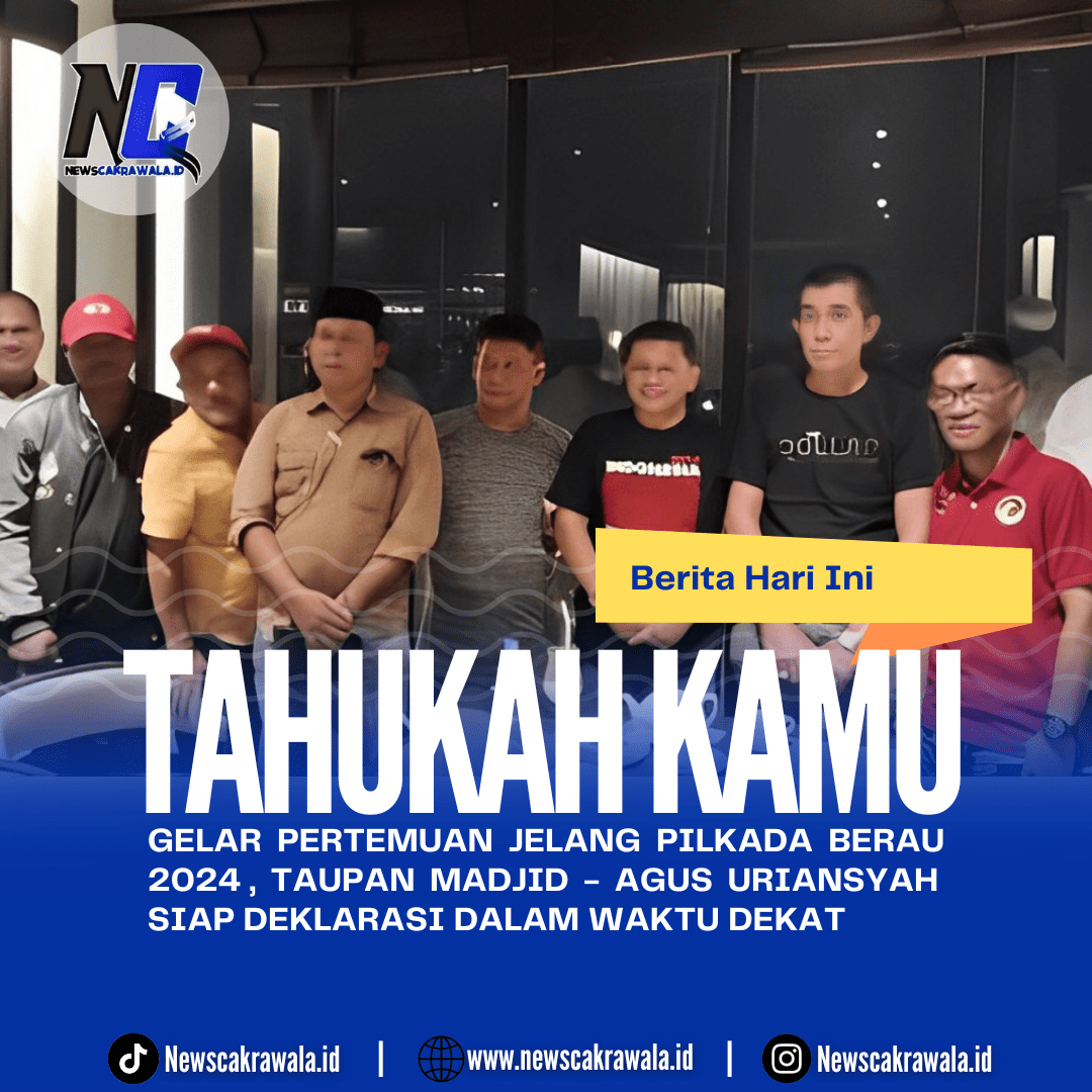 Pertemuan yang juga dihadiri langsung Kedua Tim Pemenangan ini membahas terkait Majunya Taupan Madjid dan Agus Uriansyah Di Pilkada Berau baik sebagai Calon Bupati dan Calon Wakil Bupati Berau periode 2024-2029.