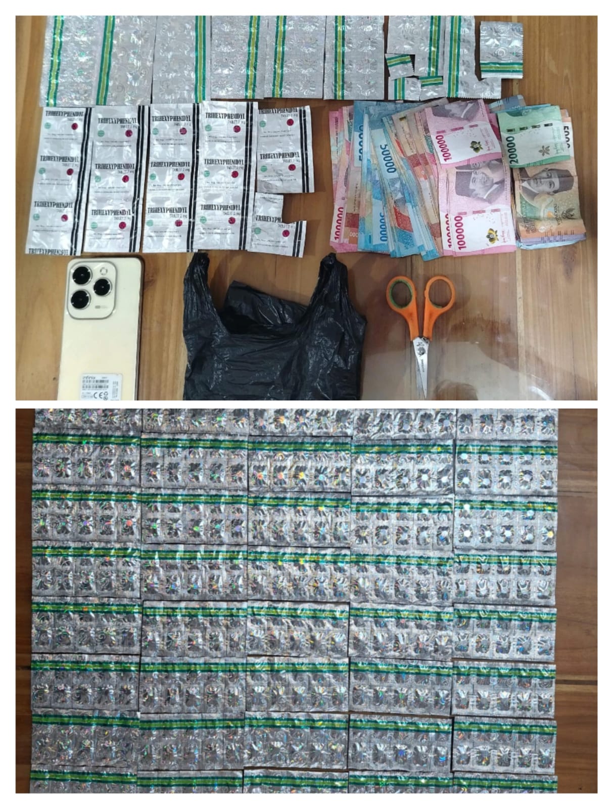 “Total barang bukti yang berhasil diamankan dari ketiga tersangka meliputi 714 butir Tramadol, 506 butir Trihexyphenidyl, Uang tunai total senilai Rp8.730.000, Tiga unit telepon genggam milik para tersangka yang digunakan untuk transaksi,” katanya, Jumat (10/4/2026).
