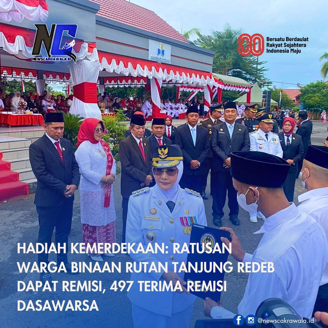 Bertempat di Lapangan GOR Pemuda Tanjung Redeb, sebanyak 472 warga binaan menerima Remisi Umum (RU), sementara 497 warga binaan lainnya memperoleh Remisi Dasawarsa, yaitu pengurangan masa pidana khusus yang diberikan setiap kelipatan 10 tahun peringatan kemerdekaan RI.