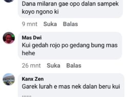 “Dana milliaran gawe opo dalan sampek koyok ngono ki”. (Dana milliaran dibuat apa kok sampai seperti itu),” ungkap akun uang bernama Subandikediri.