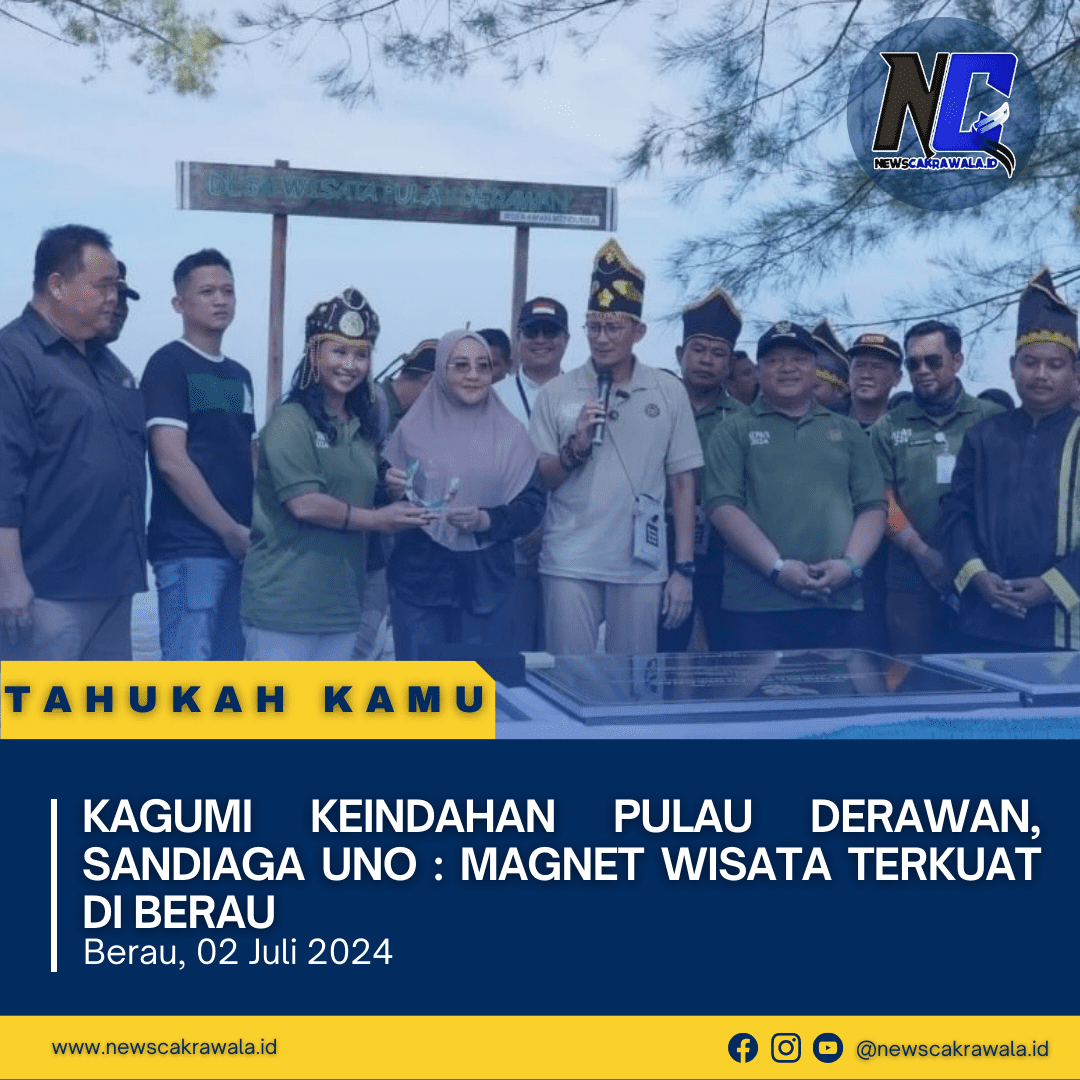 Newscakrawala.id ||Pulau Derawan – Tiba di Pulau Derawan, Menparekraf Sandiaga Uno berserta rombongan disambut dengan tarian selamat datang oleh warga Pulau Derawan yang berkumpul di dermaga pada Selasa (2/07/2024) pagi.