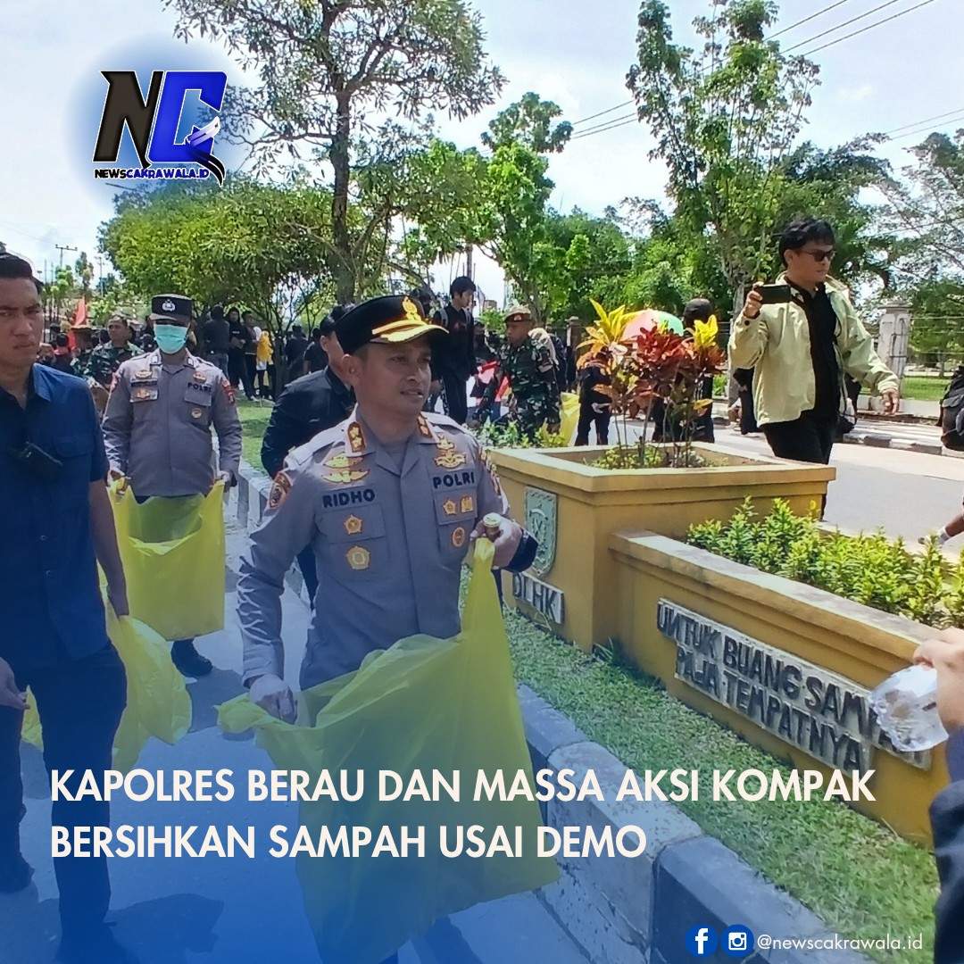 Kapolres Berau, AKBP Ridho Tri Putranto, bersama personel Polri dan TNI terlihat turun langsung memimpin aksi bersih-bersih sampah di sekitar lokasi demonstrasi. Massa aksi pun turut serta, bahu-membahu mengumpulkan sampah agar area kantor dewan kembali rapi dan bersih.