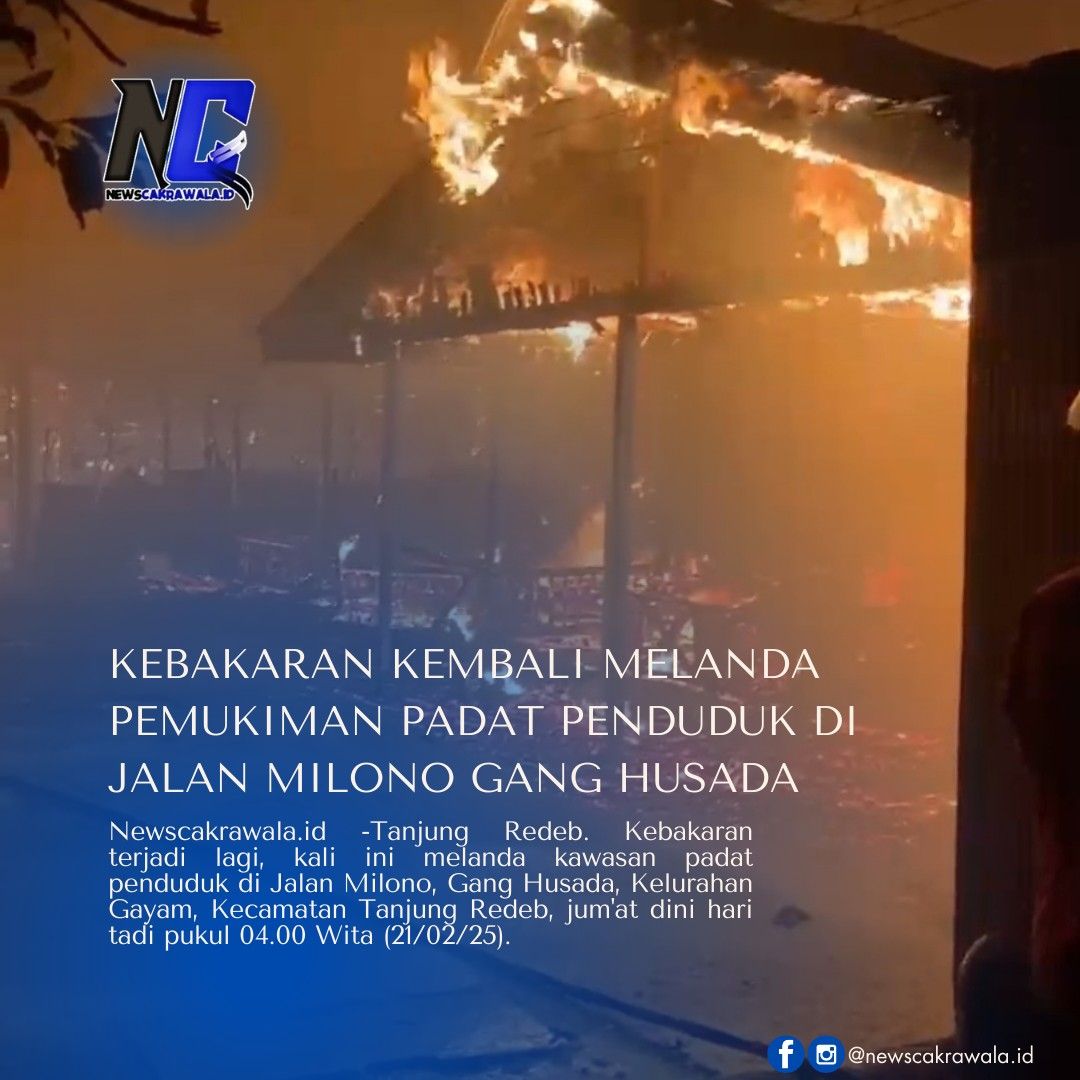 Newscakrawala.id -Tanjung Redeb. Kebakaran terjadi lagi, kali ini melanda kawasan padat penduduk di Jalan Milono, Gang Husada, Kelurahan Gayam, Kecamatan Tanjung Redeb, jum’at dini hari tadi pukul 04.00 Wita (21/02/25).