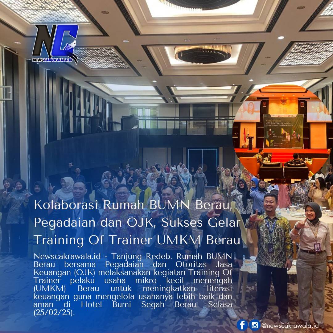 Newscakrawala.id – Tanjung Redeb. Rumah BUMN Berau bersama Pegadaian dan Otoritas Jasa Keuangan (OJK) melaksanakan kegiatan Training Of Trainer pelaku usaha mikro kecil menengah (UMKM) Berau untuk meningkatkan literasi keuangan guna mengelola usahanya lebih baik dan aman di Hotel Bumi Segah Berau, Selasa (25/02/25).