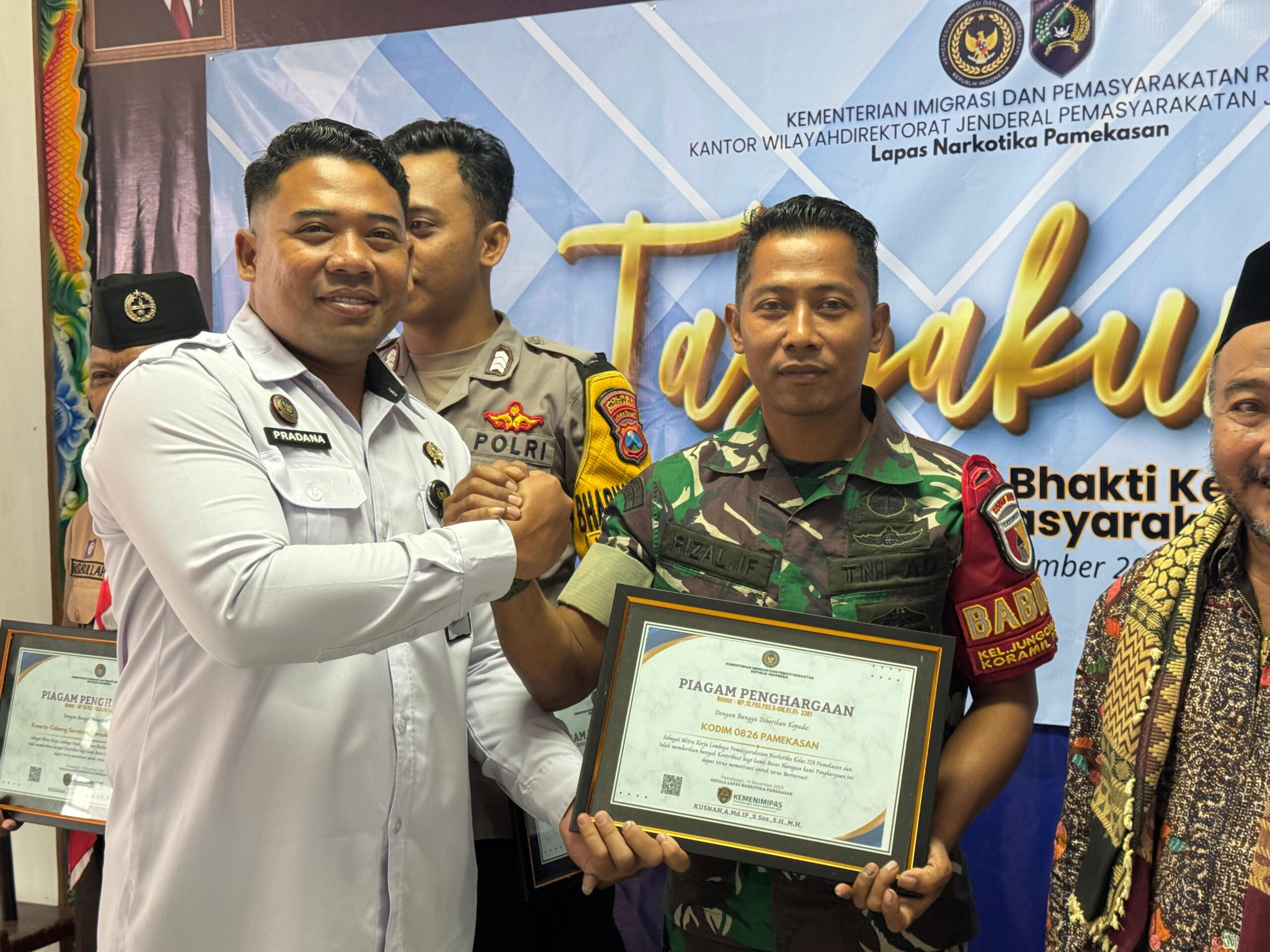 Agenda ini juga memberikan sertifikat penghargaan kepada mitra kerja yang mendukung program Lapas Narkotika Pamekasan, terhadap Ghana Recovery, PP Al-Kautsar, Kwartir Cabang Gerakan Pramuka Kabupaten Pamekasan, Yayasan Pelita Kasih Allah, Polres Pamekasan, Kodim 0826 Pamekasan, dan Kompi 1 Batalyon D Satbrimob Polda Jatim.