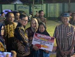 Memungkasi pembukaan Bazar UMKM Bersinergi, PJ. Bupati Pamekasan Masrukin memberikan bantuan kepada warga masyarakat. (an)