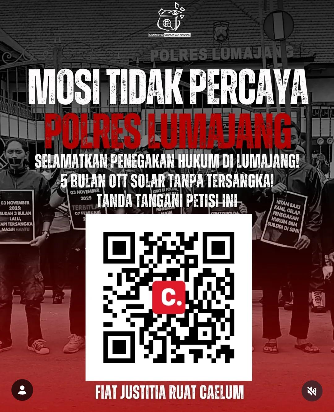 Postingan sarat menyentuh titik nadir penanganan hukum di Polres Lumajang, utamanya tindakan operasi tangkap tangan terhadap terduga pelaku penyelewengan BBM bersubsidi jenis Sola pada November 2025 lalu, yang hingga kini dirasakan lenyap begitu saja.
