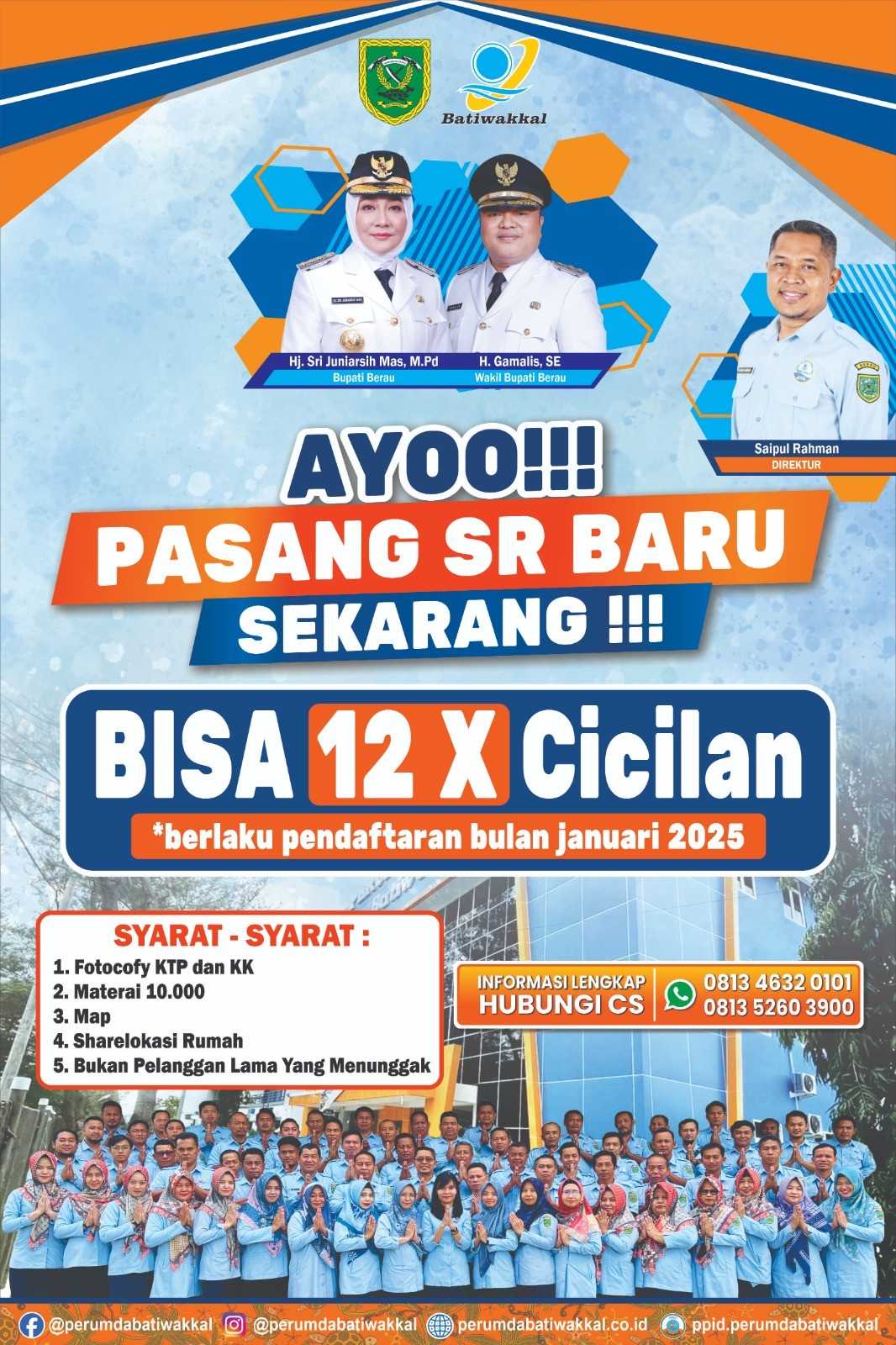 Newscakrawala.id || Tanjung Redeb. Seperti tahun-tahun sebelumnya diawal tahun 2025 Perumdam Batiwakkal kembali membuka kesempatan kepada masyarakat yang belum menjadi pelanggan air bersih dengan sistem cicilan.