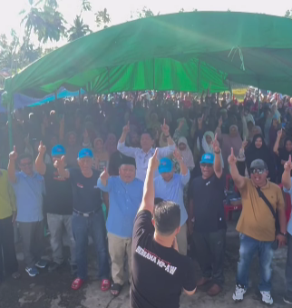 Tampak hadir ratusan warga yang mengikuti kampanye Pasangan Calon (Paslon) Nomor urut 1 yang mempunya Slogan “Menyala Abangku” .