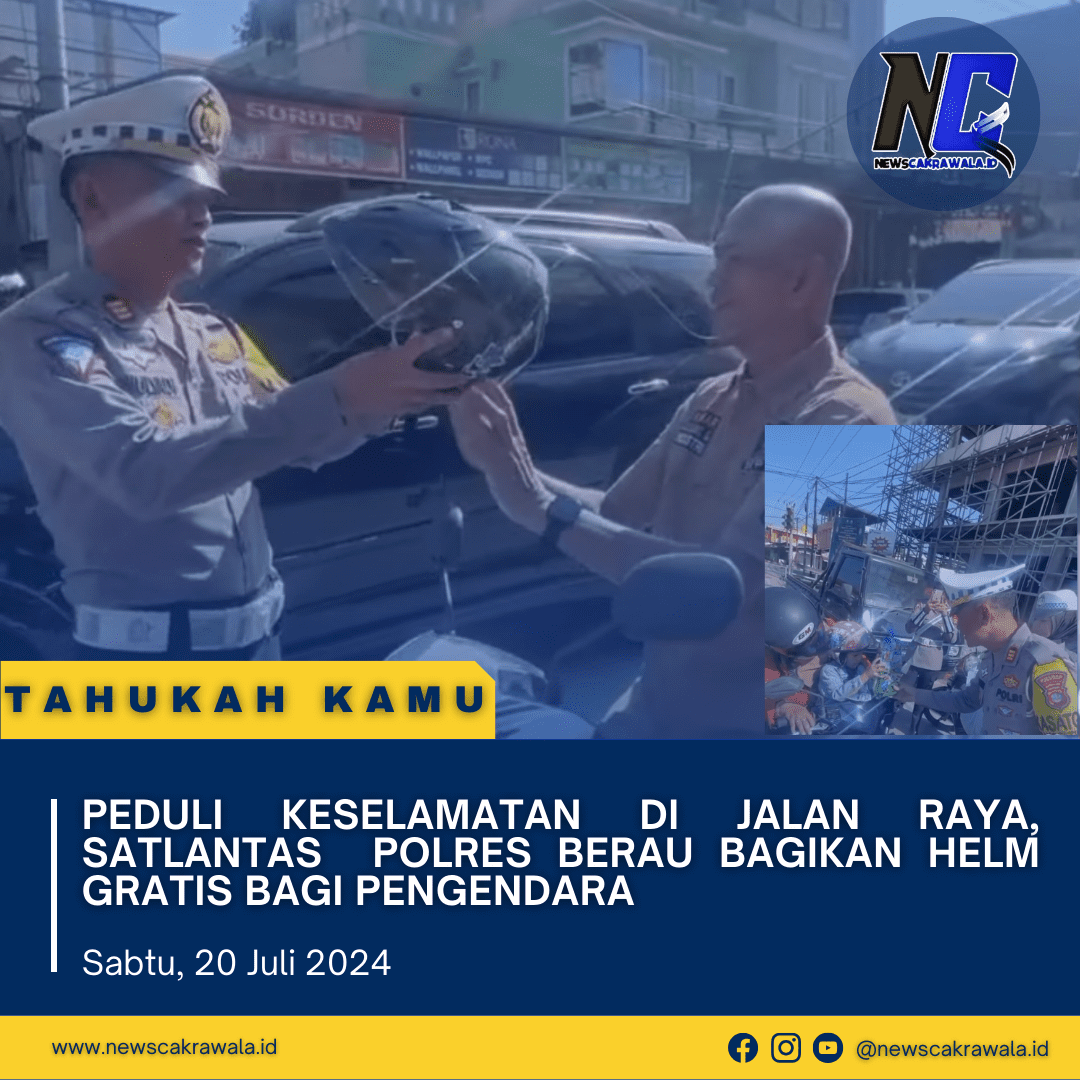Newscakrawala.id || Tanjung Redeb. Kasat Lantas Polres Berau, AKP Wulyadi S.H., menunjukkan kepeduliannya terhadap keselamatan pengendara dengan membagikan helm gratis kepada pengendara motor di berbagai titik di Kabupaten Berau. Kegiatan ini dilakukan sebagai bagian dari kampanye keselamatan berkendara yang rutin diadakan oleh Polres Berau.