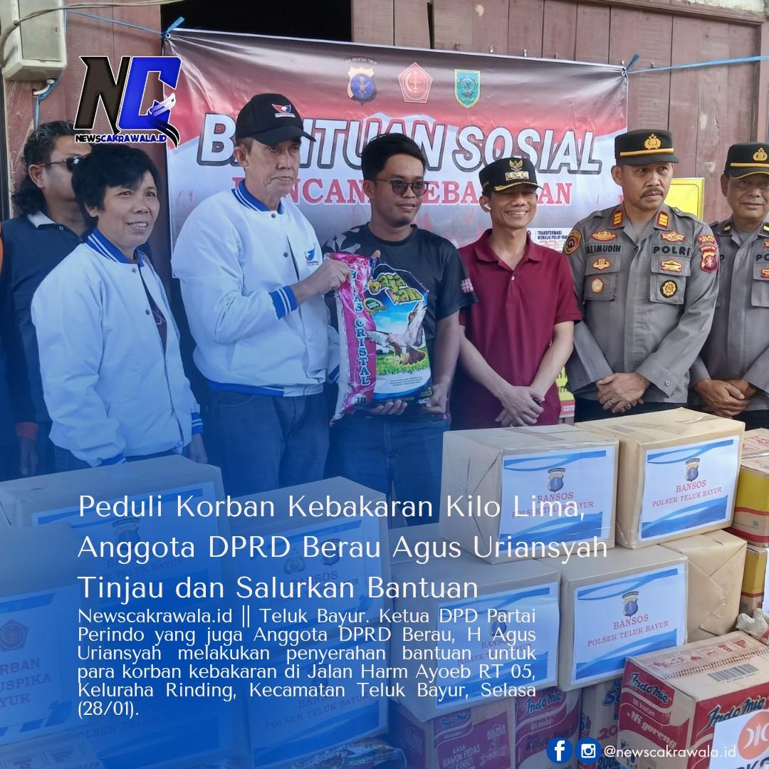 Atas dasar itu pula Agus Uriansyah yang merupakan Anggota DPRD Berau tergerak hatinya untuk berbagi dan peduli kepada korban kebakaran di kilo lima.