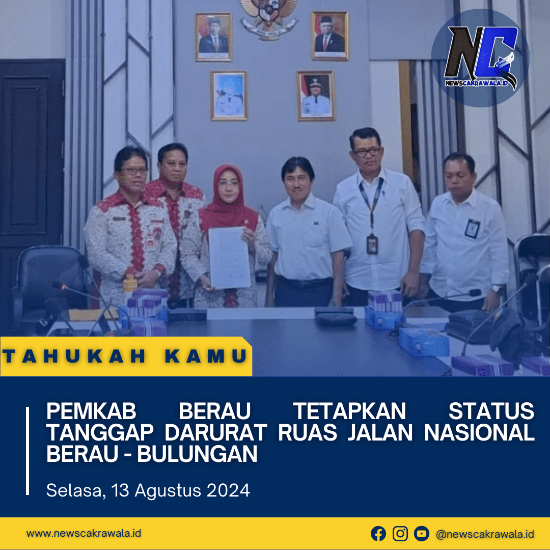 Newscakrawala.id || Tanjung Redeb . Pemerintah Kabupaten Berau menerima audiensi dari Balai Besar Penanganan Jalan Nasional Wilayah II Provinsi Kalimantan Timur, Senin (12/8/24) di ruang rapat Kakaban. Audiensi ini terkait bencana tanah longsor di ruas jalan simpang 3 Maluang – Batas Bulungan. Yang kemudian dilanjutkan dengan penetapan status tanggap darurat dan peninjauan ke lokasi.