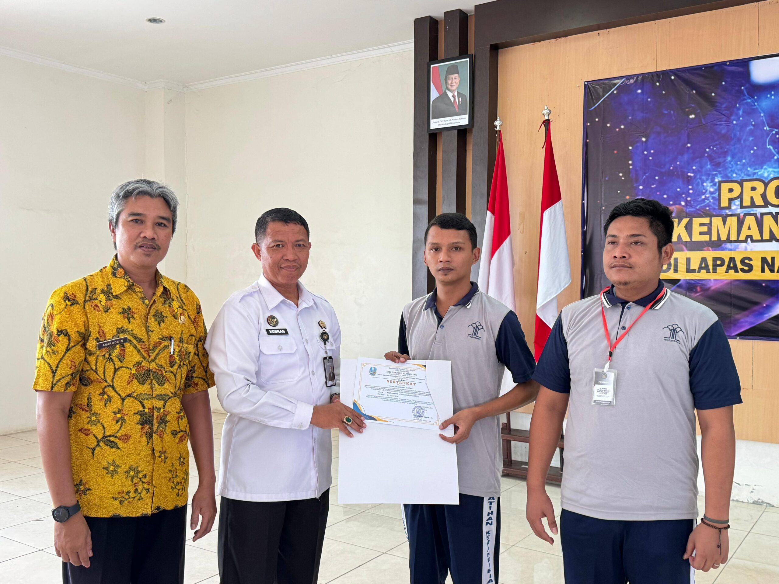 Penutupan kegiatan program pelatihan kemandirian pengelasan tersebut berlangsung pada Kamis 30/10/2025 di Aula Bimbingan Kerja Lapas Narkotika Pamekasan.
