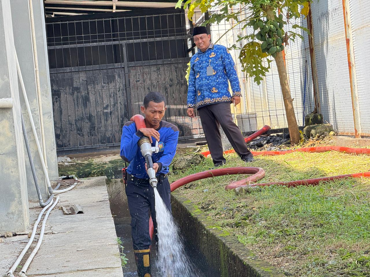 “Kegiatan penyemprotan saluran air ini kami lakukan sebagai langkah preventif untuk menjaga kebersihan lingkungan Lapas Narkotika. Kami ingin memastikan bahwa saluran air tetap lancar sehingga tidak menimbulkan genangan, bau, maupun risiko gangguan kesehatan. Kami mengapresiasi dukungan dan kerja sama dari Pemadam Kebakaran Kabupaten Pamekasan dalam mendukung terciptanya lingkungan lapas yang bersih dan sehat”. Ujar Kusnan.
