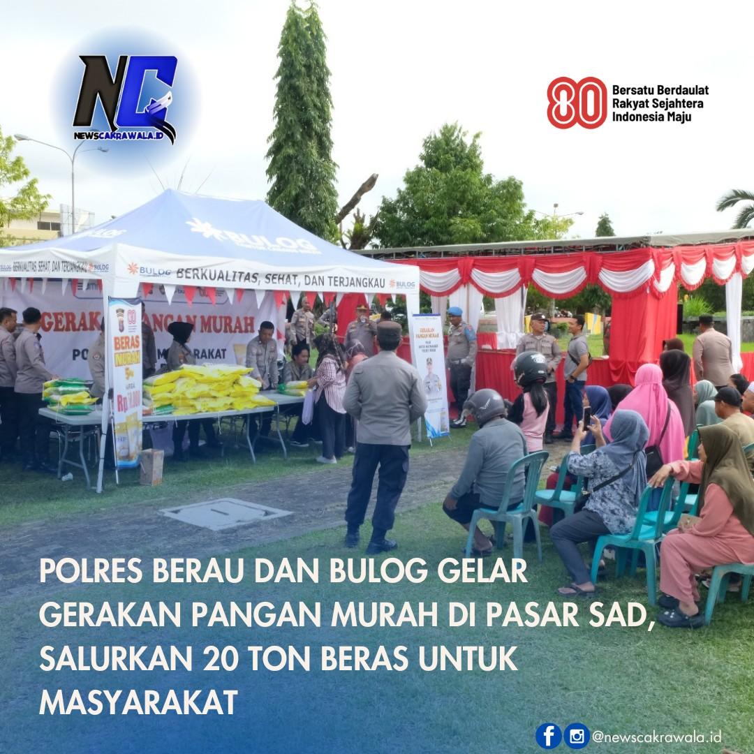 Berau – Polres Berau bersama Perum Bulog Cabang Berau menggelar Gerakan Pangan Murah (GPM) di Pasar Sanggam Adji Dilayas (SAD), Kamis (14/8/2025). Kegiatan ini menjadi langkah nyata untuk mendukung ketahanan pangan sekaligus menekan inflasi harga beras di wilayah Bumi Batiwakkal.