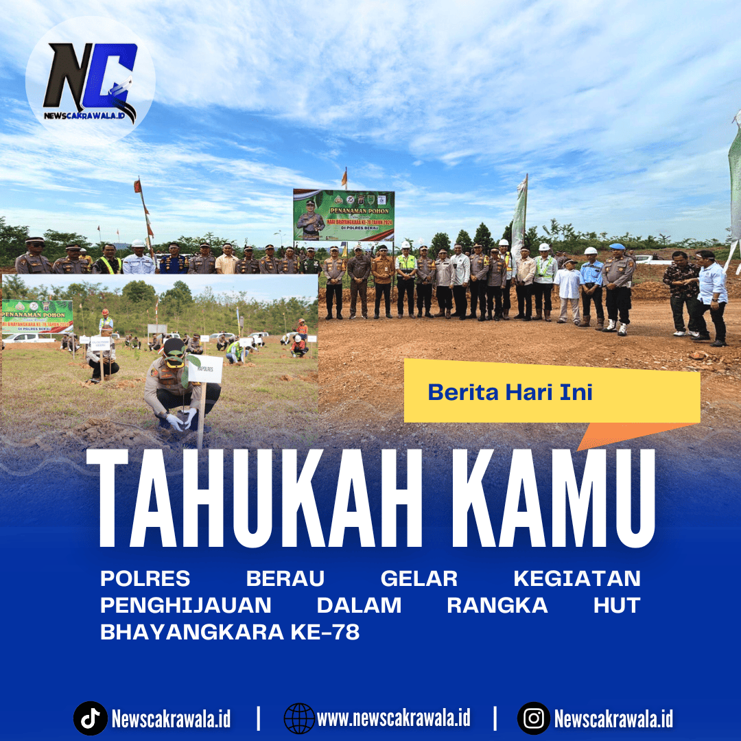 Newscakrawala.id || Sambaliung. Polres Berau bersama Forkopimda Kabupaten Berau dan sejumlah perwakilan perusahaan menggelar kegiatan penghijauan atau penanaman pohon di Kampung Gurimbang, Kecamatan Sambaliung, Kabupaten Berau. Kegiatan ini dilaksanakan dalam rangka memperingati Hari Bhayangkara ke-78 tahun 2024 dengan tema “Polri Presisi mendukung percepatan Transformasi Ekonomi yang Inklusif dan berkelanjutan menuju Indonesia Emas”.
