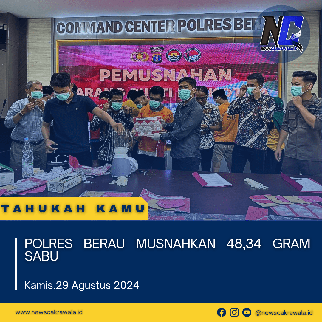Newscakrawala.id || Tanjung Redeb . Satresnarkoba Polres Berau bersama jajaran Polsek menggelar pemusnahan barang bukti narkotika jenis sabu dari puluhan tersangka di Ruang Command Center Polres Berau, pada Kamis 29 Agustus 2024, sekitar 11.30 wita.