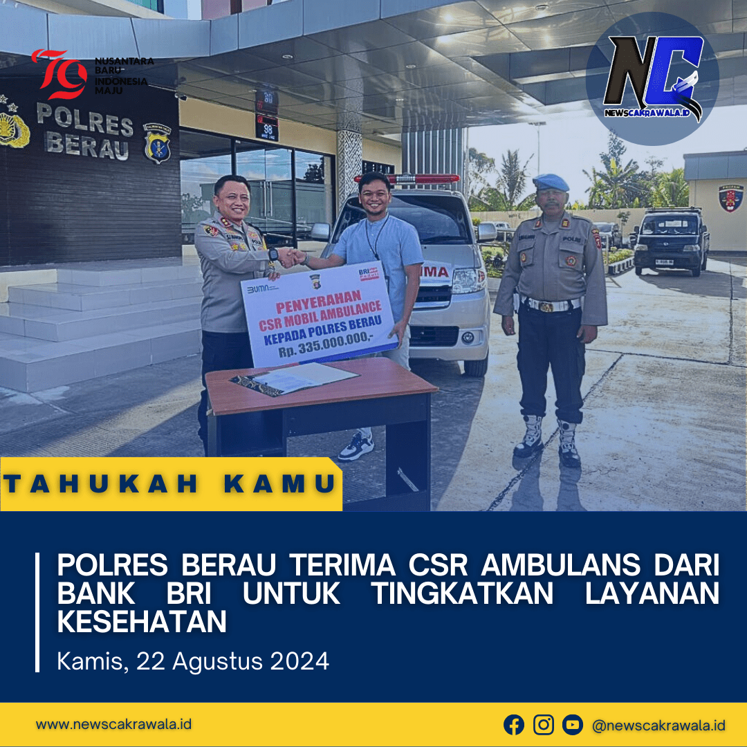 Newscakrawala.id || Tanjung Redeb. Polres Berau kembali menunjukkan komitmennya dalam memberikan pelayanan terbaik kepada masyarakat, kali ini melalui peningkatan fasilitas kesehatan. Pada hari Rabu, 21 Agustus 2024, pukul 17.00 WITA, Polres Berau menerima satu unit mobil ambulans sebagai bagian dari program Corporate Social Responsibility (CSR) dari Bank BRI. Penyerahan tersebut berlangsung di depan Mako Polres Berau, Jalan Gatot Subroto, Tanjung Redeb.