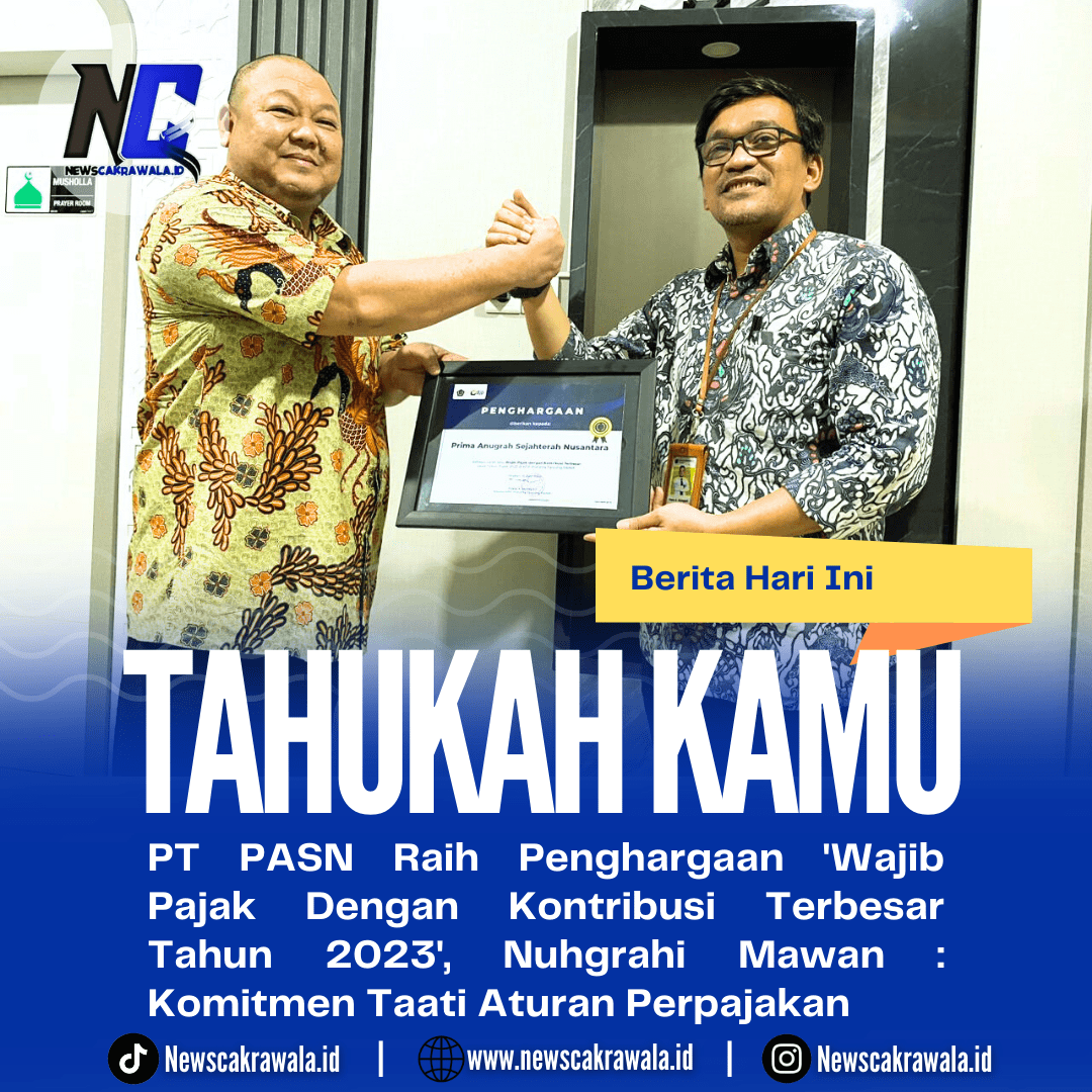 Newscakrawala.id || Tanjung Redeb. Menjadi salah satu Perusahaan taat kewajiban perpajakan PT Prima Anugrah Sejahterah Nusantara (PT PASN) mendapat penghargaan dari Kantor Pajak Pratama Tanjung Redeb sebagai ‘Wajib Pajak Dengan Kontribusi Terbesar Tahun 2023’ ,(12/06/24).