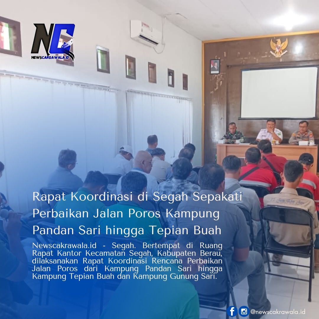 Newscakrawala.id – Segah. Bertempat di Ruang Rapat Kantor Kecamatan Segah, Kabupaten Berau, dilaksanakan Rapat Koordinasi Rencana Perbaikan Jalan Poros dari Kampung Pandan Sari hingga Kampung Tepian Buah dan Kampung Gunung Sari.