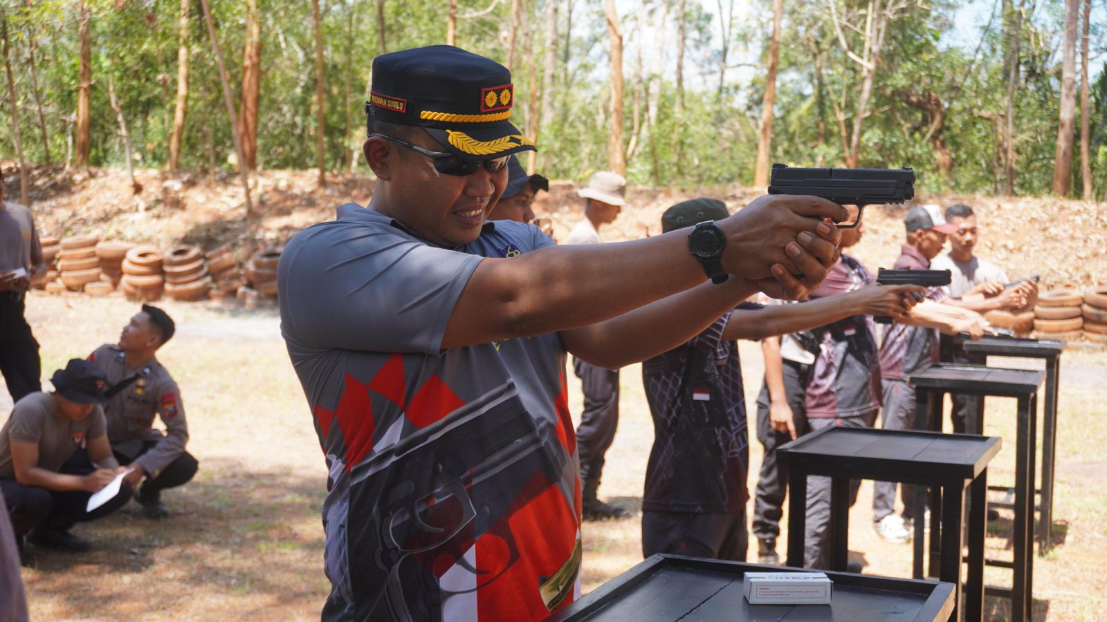 Kegiatan latihan menembak yang berlangsung di lapangan Tembak Batalyon D Pelopor Polda Jatim di Pamekasan pada Kamis 19/9/2024.