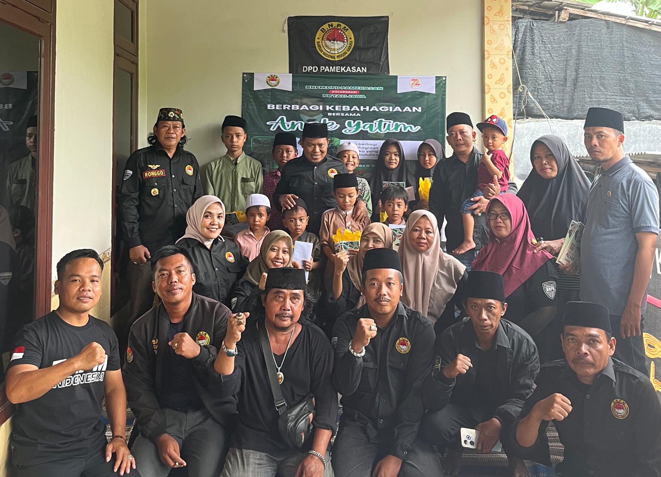 BNPM berbagi santunan anak yatim dirumah Luluk Sekda DPD BNPM Pamekasan di Dusun Mongging Pademawu, Minggu 30/11/2025.