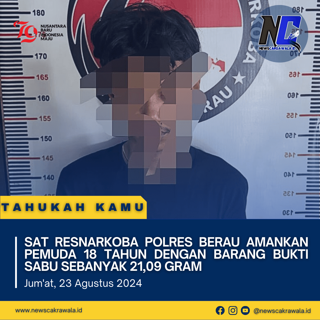 Newscakrawala.id || Tanjung Redeb. Satuan Reserse Narkoba (Sat Resnarkoba) Polres Berau kembali mencetak prestasi dalam upaya pemberantasan narkotika di wilayah Kabupaten Berau. Pada Rabu, 21 Agustus 2024, sekitar pukul 03.20 WITA, polisi berhasil menangkap seorang pemuda berinisial MA (18) yang diduga terlibat dalam peredaran narkotika jenis sabu di Kelurahan Karang Ambun, Kecamatan Tanjung Redeb, Kabupaten Berau.