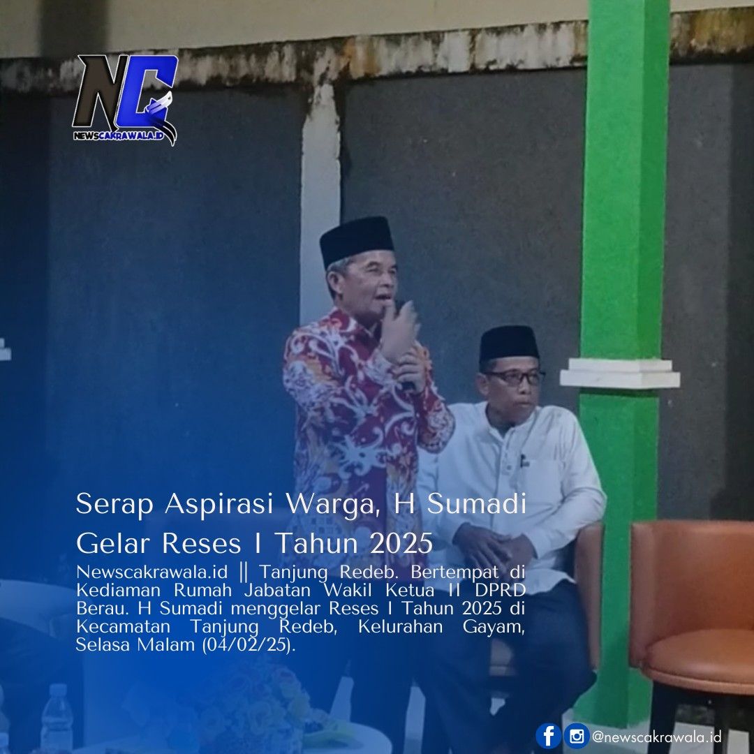 Newscakrawala.id || Tanjung Redeb. Bertempat di Kediaman Rumah Jabatan Wakil Ketua II DPRD Berau. H Sumadi menggelar Reses I Tahun 2025 di Kecamatan Tanjung Redeb, Kelurahan Gayam, Selasa Malam (04/02/25).