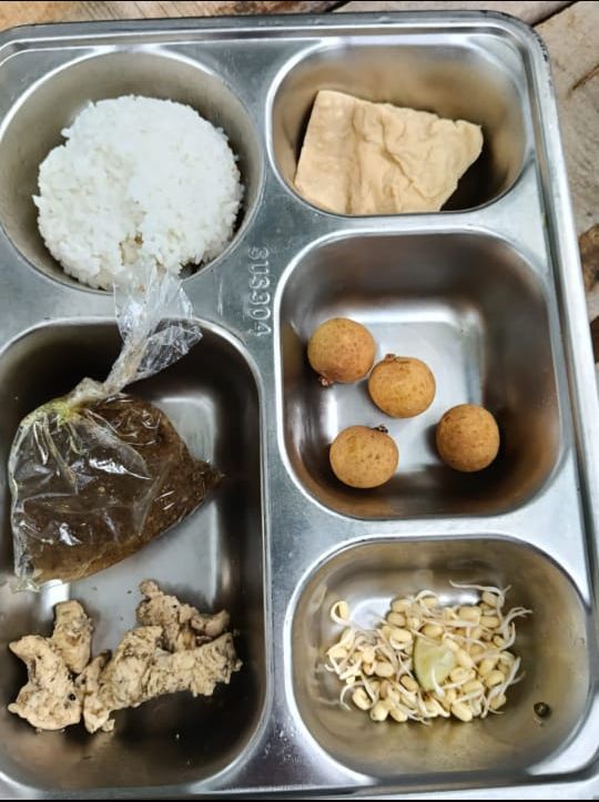 Dalam satu porsi yang dibagikan kepada peserta didik, terlihat hanya berisi nasi putih, kecambah, empat butir buah lengkeng, dan beberapa lauk tambahan. Komposisi tersebut dianggap belum mencukupi kebutuhan gizi harian anak, sehingga memicu kekecewaan para wali murid.