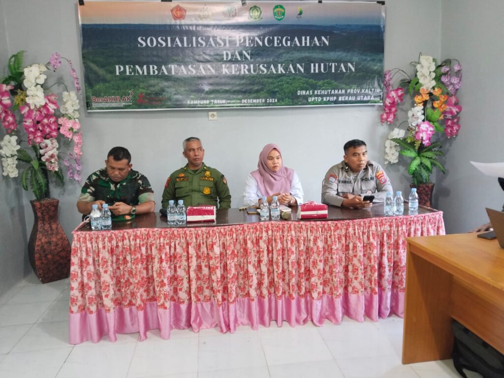 Newscakrawala.id || Gunung Tabur. Dalam upaya mendukung kelestarian lingkungan, Polsek Gunung Tabur turut serta dalam kegiatan Sosialisasi Pencegahan dan Pembatasan Kerusakan Hutan, yang diselenggarakan oleh Dinas Kehutanan UPTD KPHP Berau Utara. Kegiatan ini berlangsung pada hari Selasa, 17 Desember 2024, di Kantor Kepala Kampung Tasuk, Kecamatan Gunung Tabur, Kabupaten Berau, dengan tujuan untuk memberikan pemahaman kepada masyarakat mengenai dampak kerusakan hutan dan pentingnya menjaga kelestarian alam.