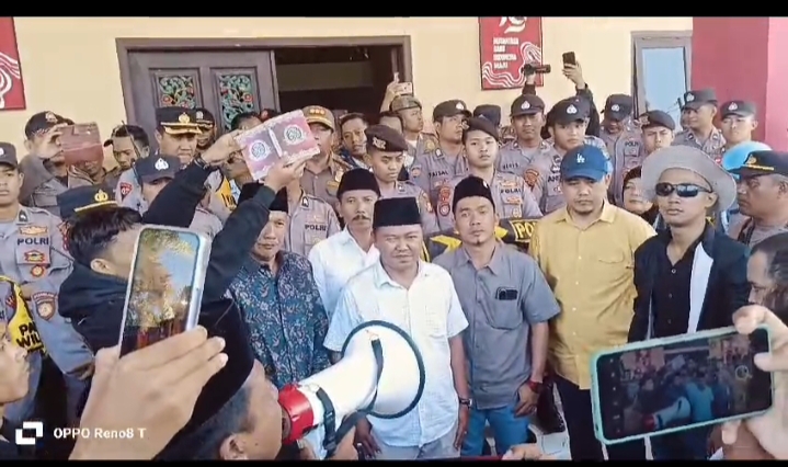 ” Hari ini Sumenep menggugat melakukan turun ke jalan di depan kantor DPRD kabupaten sumenep, hanya ingin berdialog seluruh anggota dewan yang baru dilantik sekaligus di sumpah,/ janji jabatan sebagai DPRD Sumenep, tapi semua nya tidak ada di kantor, ada hanya segelintir anggota dewan,” ucap Faiq pada Senin (26/8/2024)