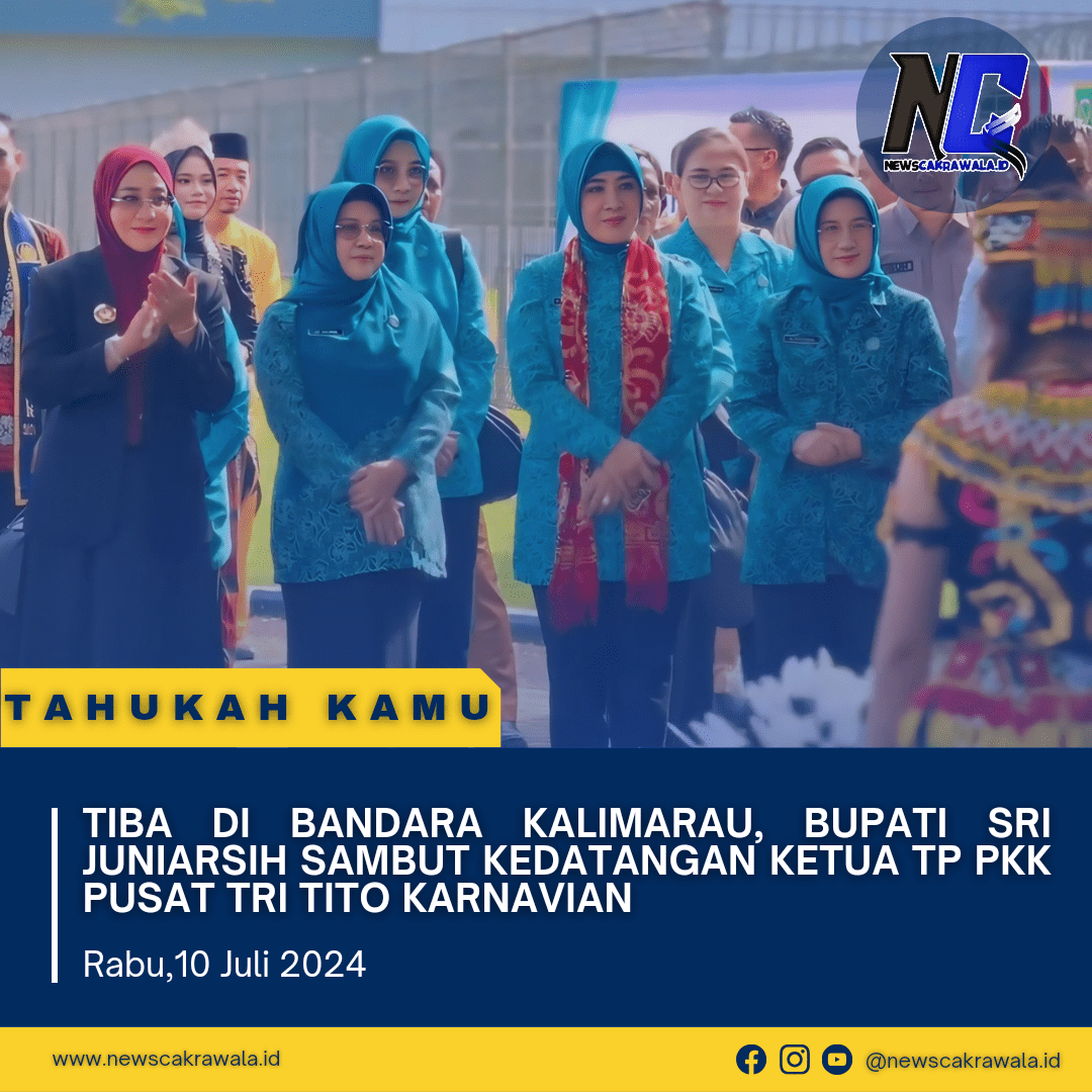 Newscakrawala.id || Teluk Bayur. Ketua Tim Penggerak Pemberdayaan Kesejahteraan Keluarga (TP PKK) Pusat, Tri Tito Karnavian, melakukan kunjungan kerja ke Kabupaten Berau. Tiba di bandar udara Kalimarau, Selasa (9/7/2024), rombongan yang disertai Utusan Presiden Seychelles untuk ASEAN, Nico Barito dan Penjabat Gubernur Kaltim, Akmal Malik, disambut langsung oleh Bupati Berau, Sri Juniarsih Mas, bersama Ketua TP PKK Kaltim, Yulia Zubir Akmal Malik serta Ketua TP PKK Berau, Sri Aslinda Gamalis.