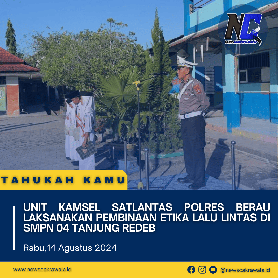 Newscakrawala.id || Tanjung Redeb. Pada Senin, 12 Agustus 2024, Unit Keamanan dan Keselamatan (Kamsel) Satuan Lalu Lintas Polres Berau melaksanakan kegiatan pengambilan pembina upacara di SMPN 04 Tanjung Redeb, yang berlokasi di Jalan Ramania, Kecamatan Tanjung Redeb, Kabupaten Berau. Kegiatan ini berlangsung mulai pukul 07.00 WITA hingga selesai.